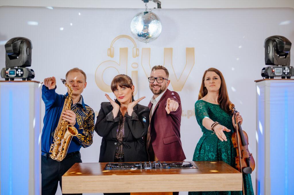 Czy można połączyć usługę Dj i zespołu ? Oczywiście, że tak. Z powodzeniem zastępujemy solidny, wieloosobowy zespół ponieważ nasza oferta DJa i Wodzireja urozmaicona jest cudownym kobiecym wokalem, saksofonistą, skrzypaczką i pianistką.